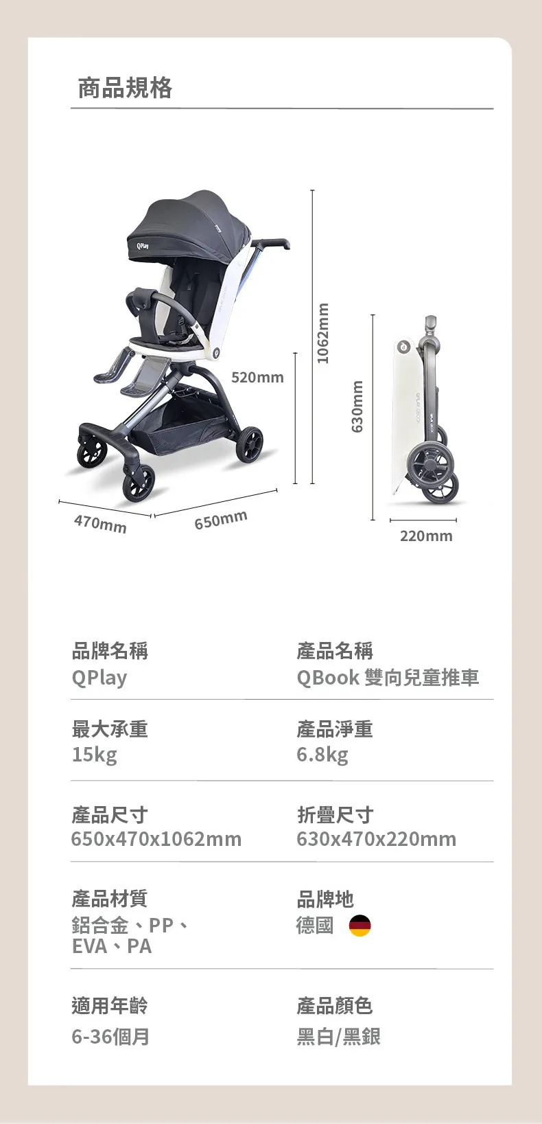 德國 QPlay QBOOK 雙向兒童推車【金寶貝】