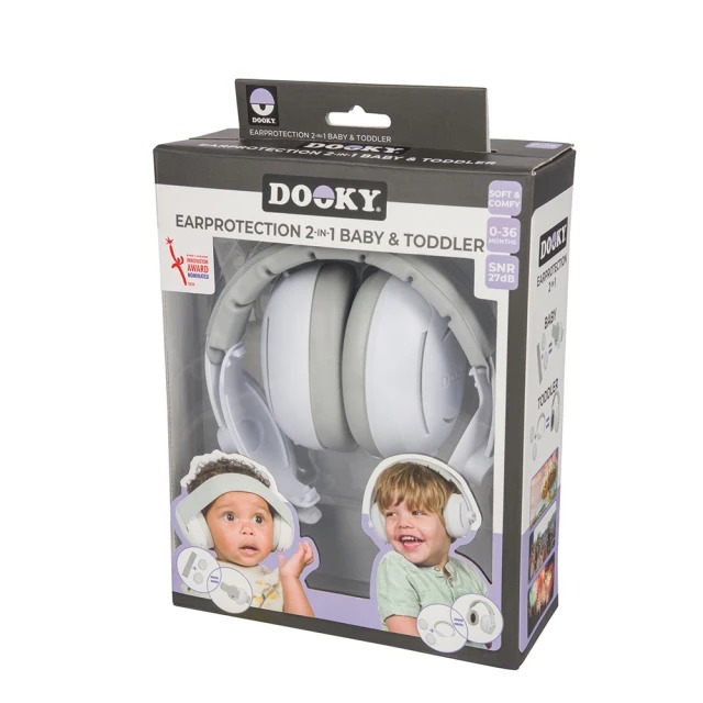 Dooky 嬰幼兒二合一護耳耳罩-白色【金寶貝 228212】(保護寶貝耳朵)