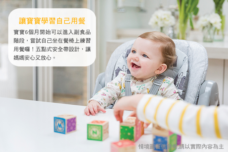 3.餐盤並非用來將孩子固定於本產品中,建議於嬰幼童無需協助即可自己獨立坐好時,方可使用本產品的坐立模式。