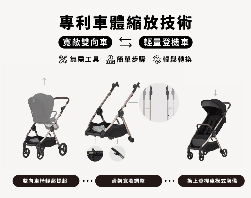 ▶ 專利車體縮放技術|車架寬窄調整,輕鬆轉換車型