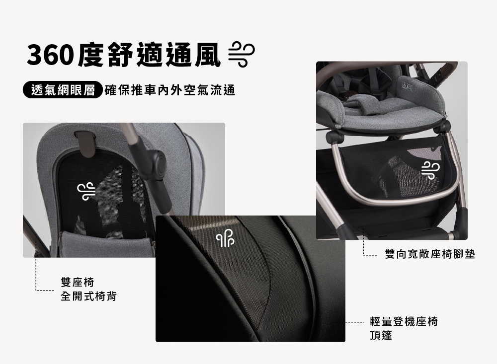 ▶ 360度內外通風|透氣網眼層設計,四季乘坐皆舒適