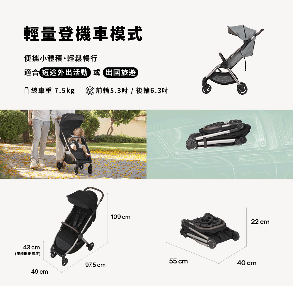 (包含 雙向寬敞座椅-腳墊、全開式椅背 / 輕量登機座椅-頂蓬透視窗、全開式椅背)