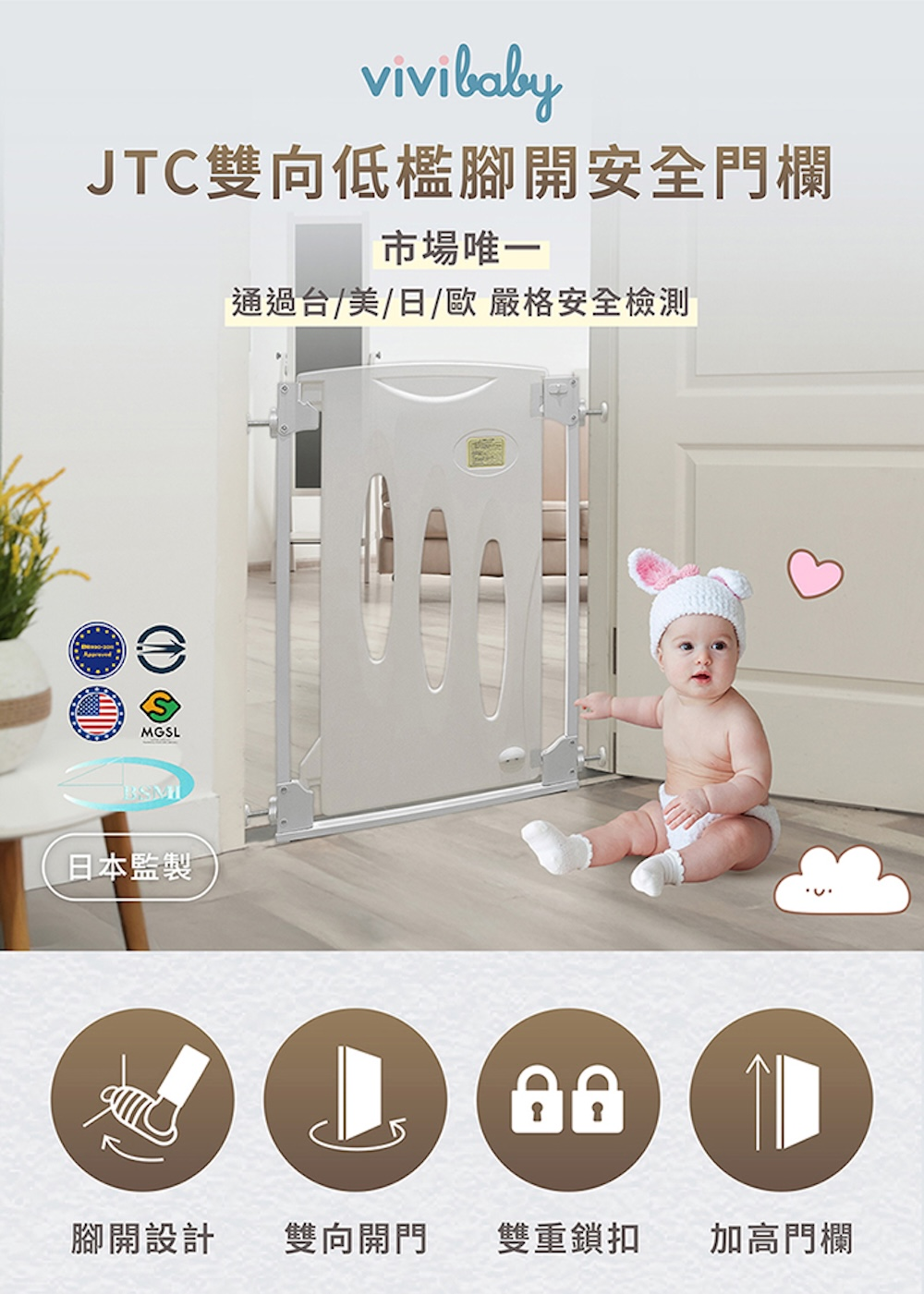 VIVIBABY JTC日本 雙向開啟兒童安全門欄【金寶貝 228468】KJ0748