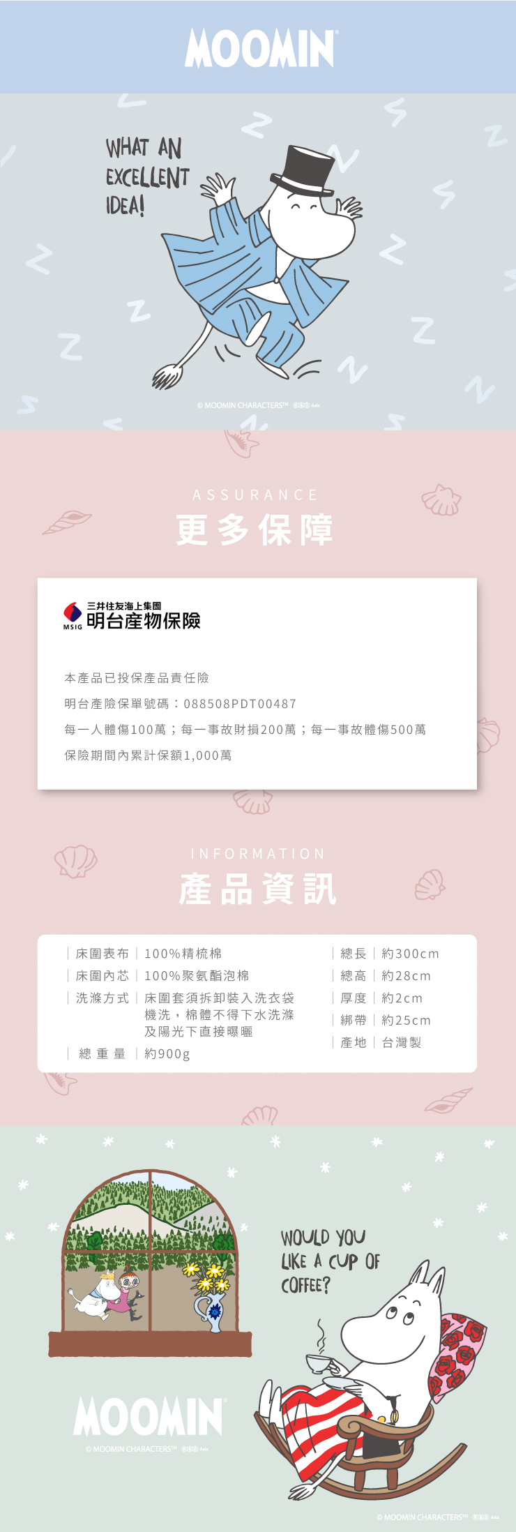 Moomin正式授權,全長300cm,防撞泡棉增設透氣孔,防撞安全透氣好眠