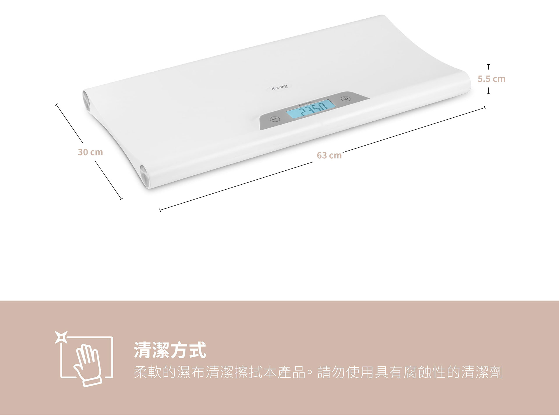 一鍵即可簡單扣除包覆寶寶身體以外的物品重量 (如墊子)