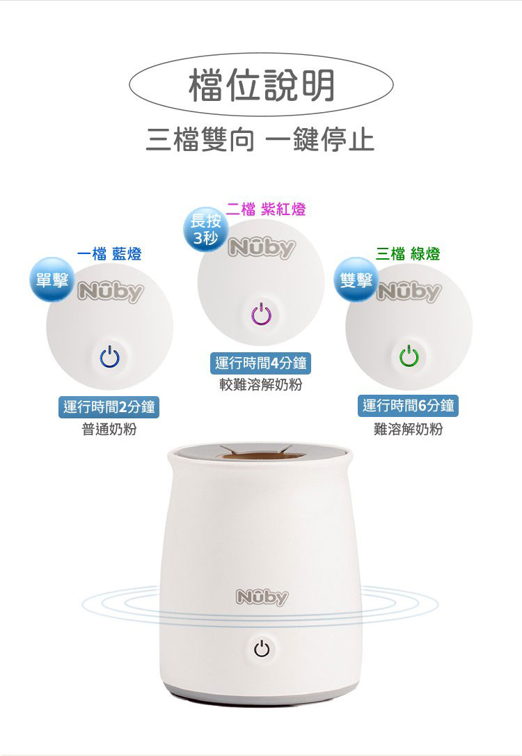 三檔切換:根據不同難易溶解奶粉,分2/4/6分鐘運行