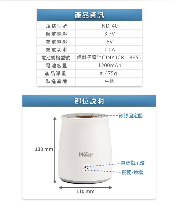 一鍵直覺操作:開關/檔次切換/電量指示 單一按鍵操作