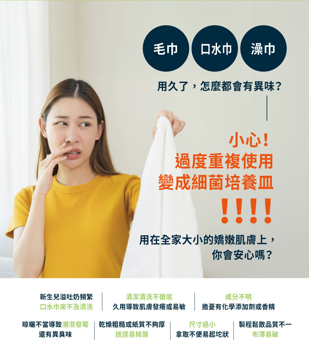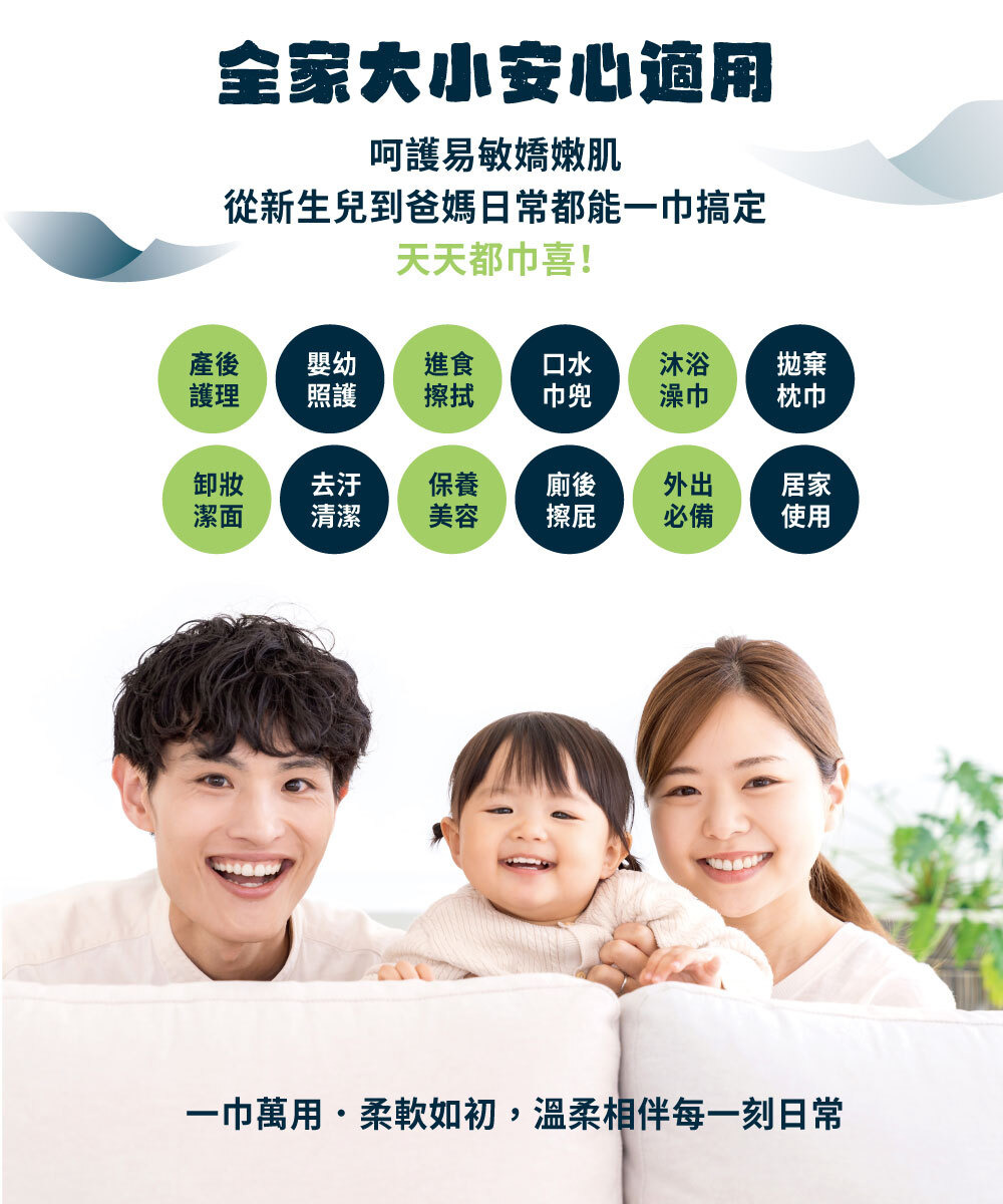 呵護易敏嬌嫩肌,從新生兒到爸媽日常都能一巾搞定
