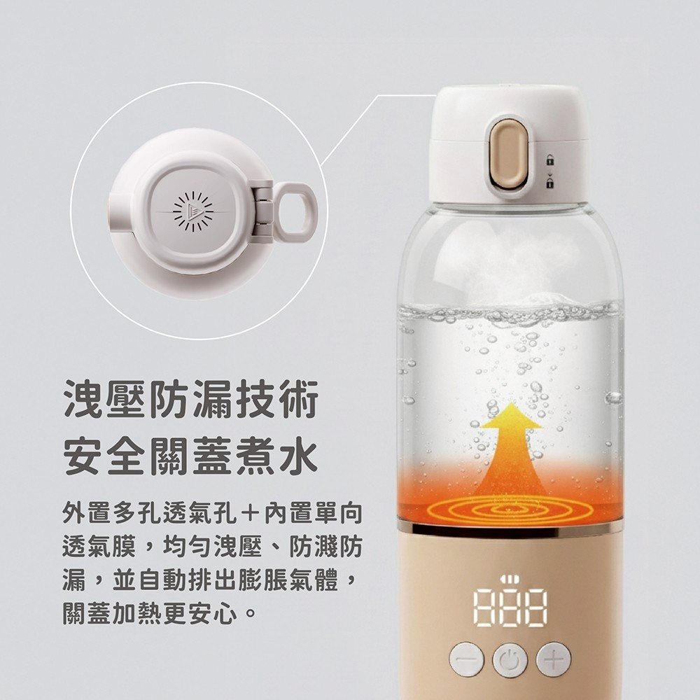 ●加熱至設定溫度後,自動啟動保溫,持續恆溫至關機或電量耗盡,外出也能安心備水