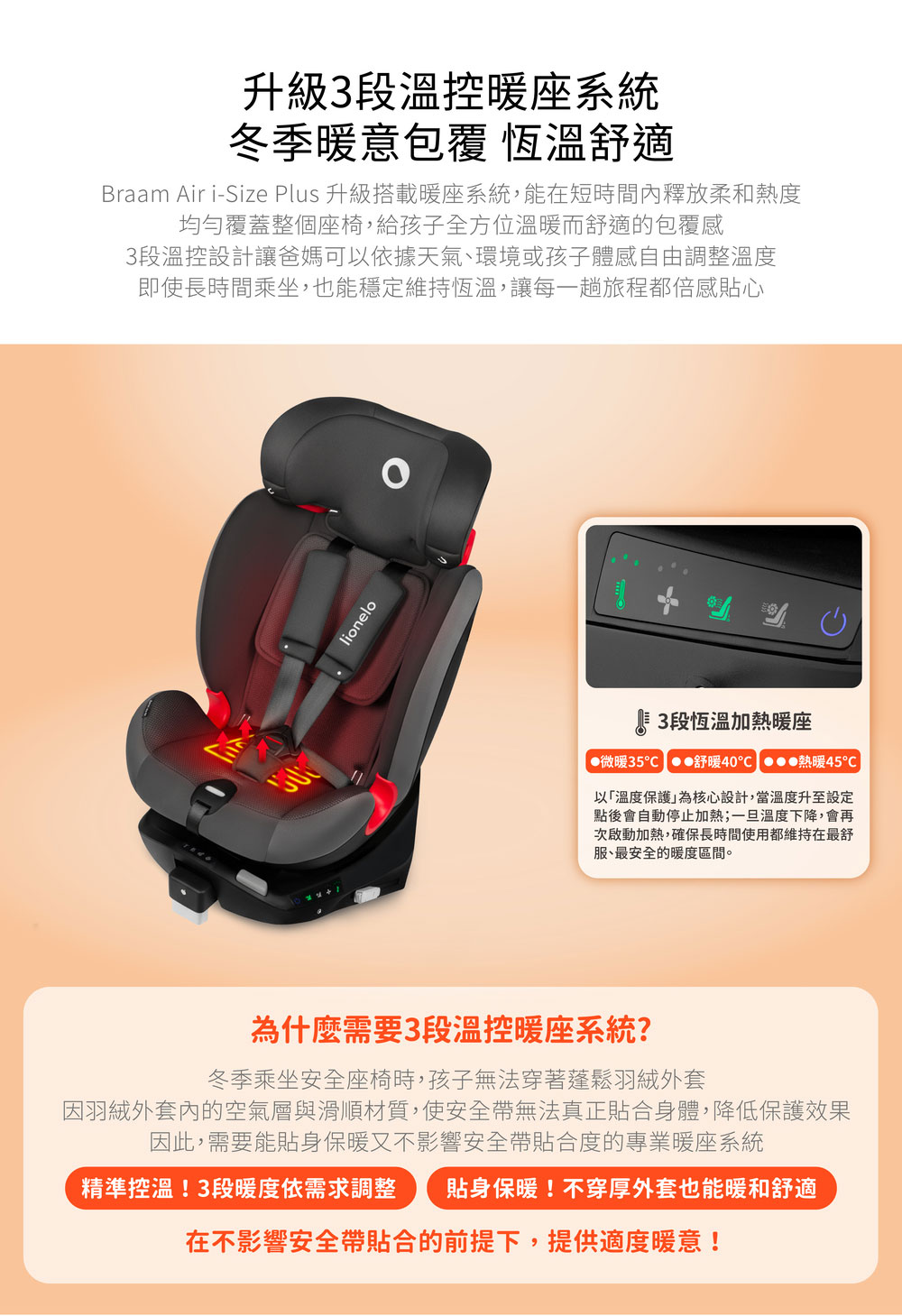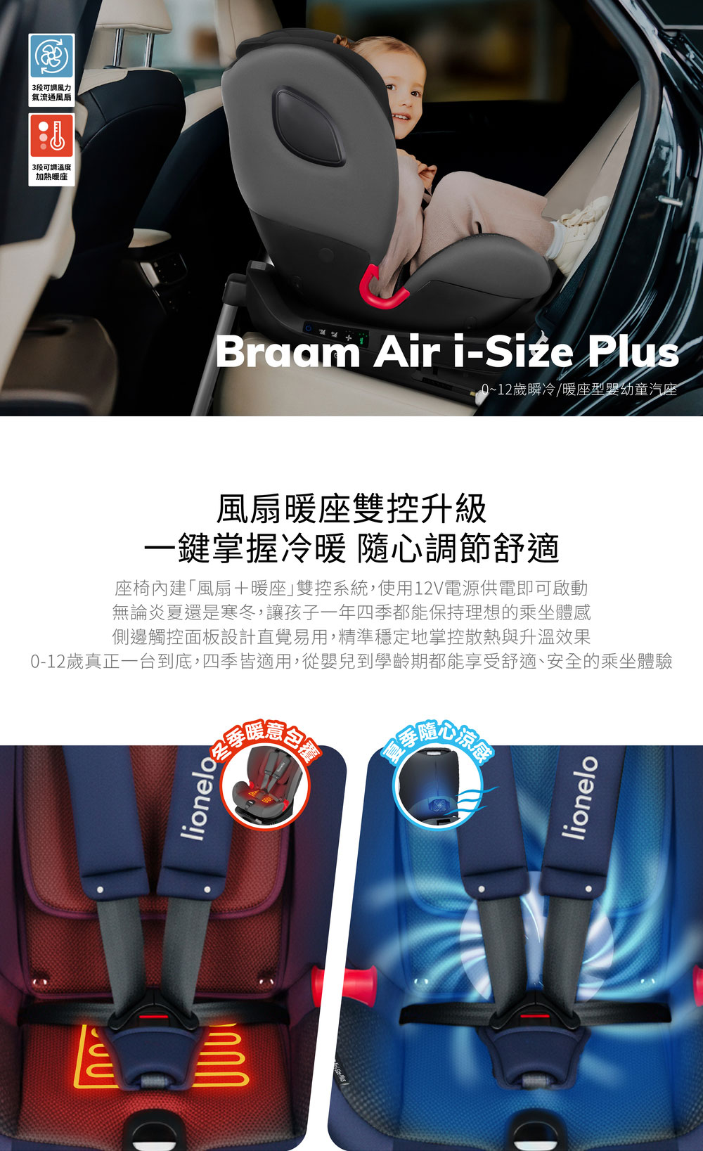 波蘭Lionelo Braam Air i-Size Plus 0~12歲瞬冷/暖座型嬰幼童汽座【金寶貝】