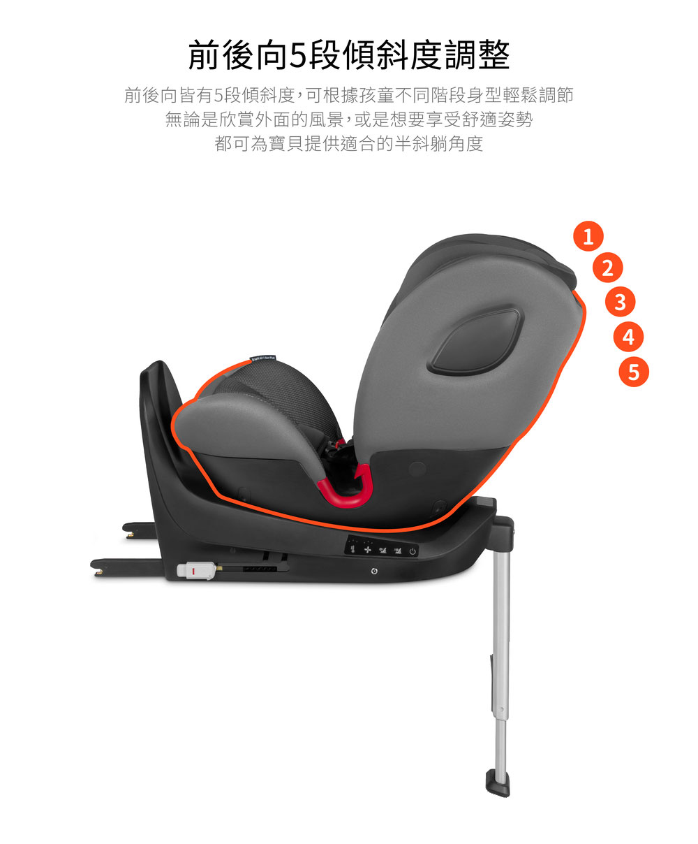 5段傾斜度調整,提供絕佳的乘坐體驗