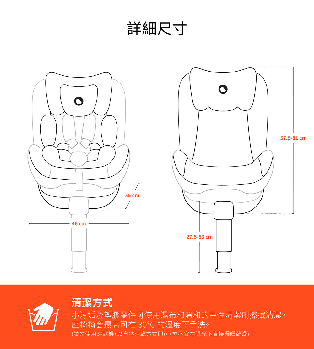 後向模式(五點式安全帶):新生兒-4歲(參考身高40-105cm/體重18kg以下)