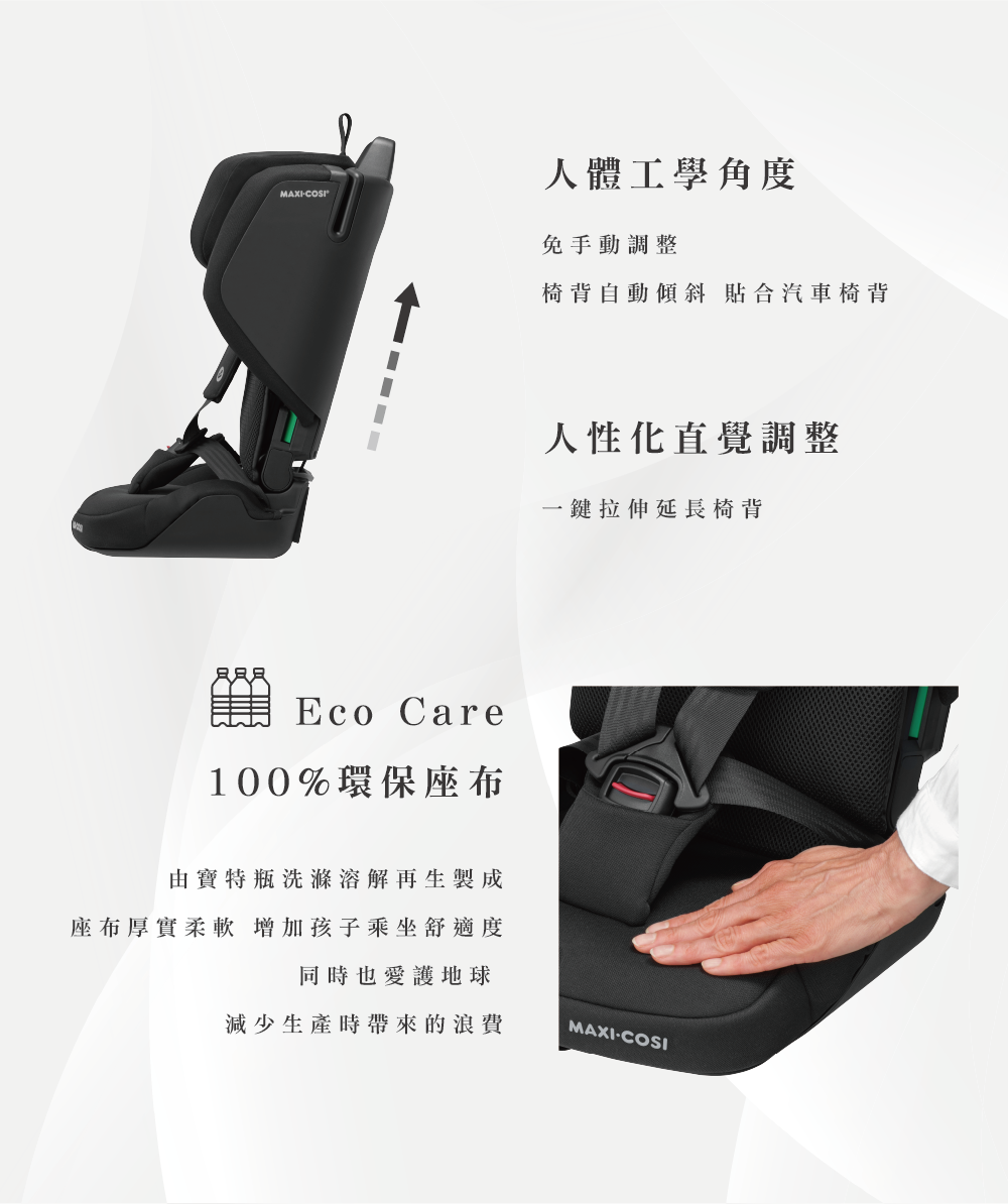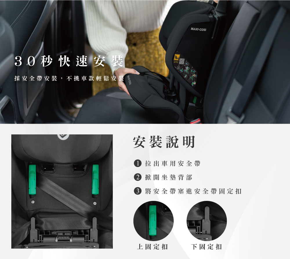 輕量4.2公斤搭配內建收納袋,攜帶輕鬆方便,不挑車款安全帶固定搭配五點式安全帶,提供完美機動性且安全又穩固。