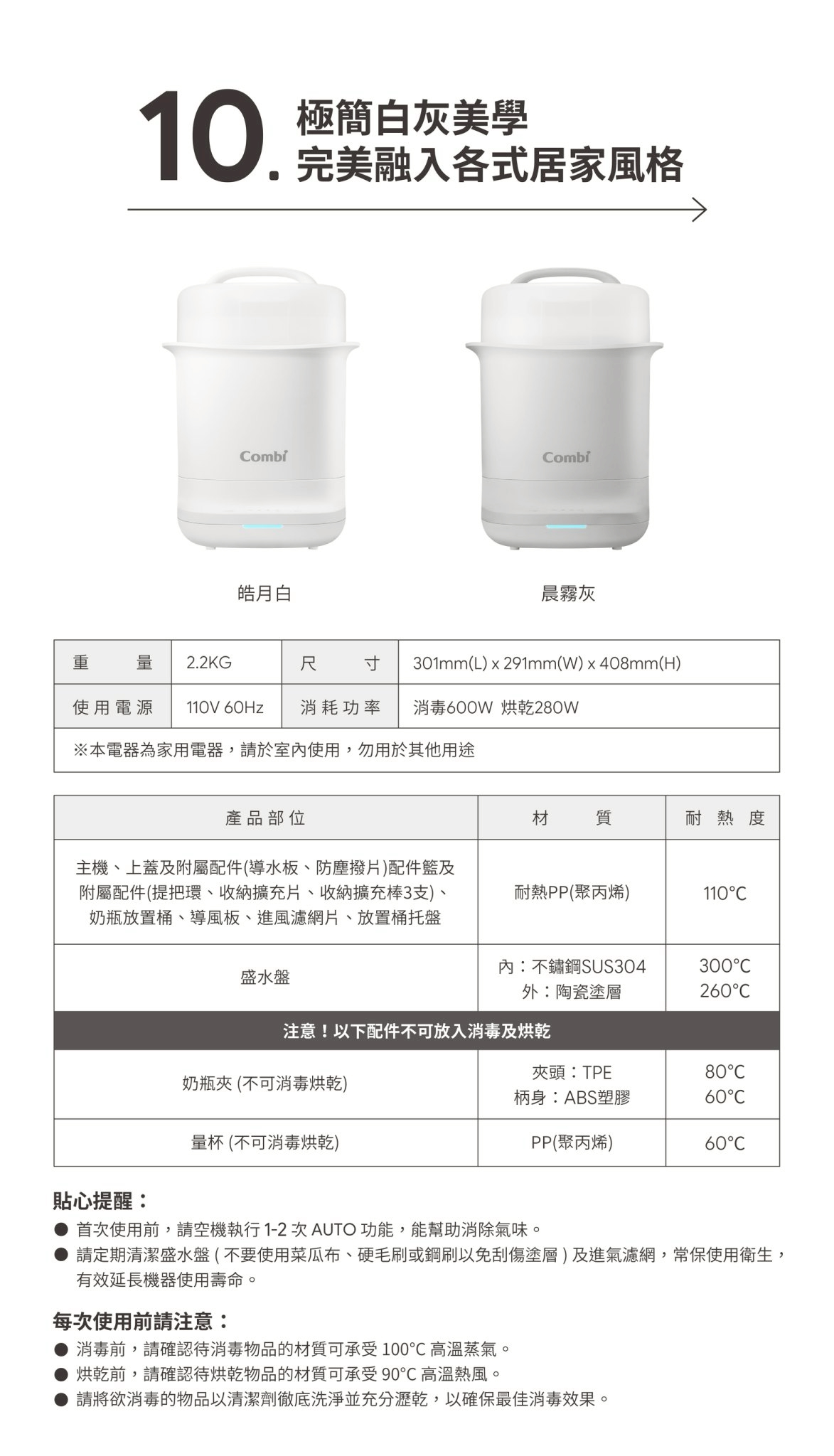 Combi 康貝 Lumi 高效烘乾消毒鍋(皓月白/晨霧灰)【金寶貝】