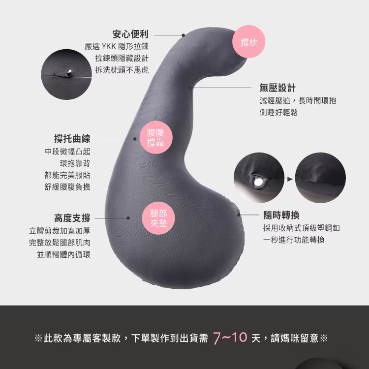 ・結合人體工學枕心結構 x 嚴選親膚表布 x 多功能育兒設計,給您最舒適的孕期睡眠