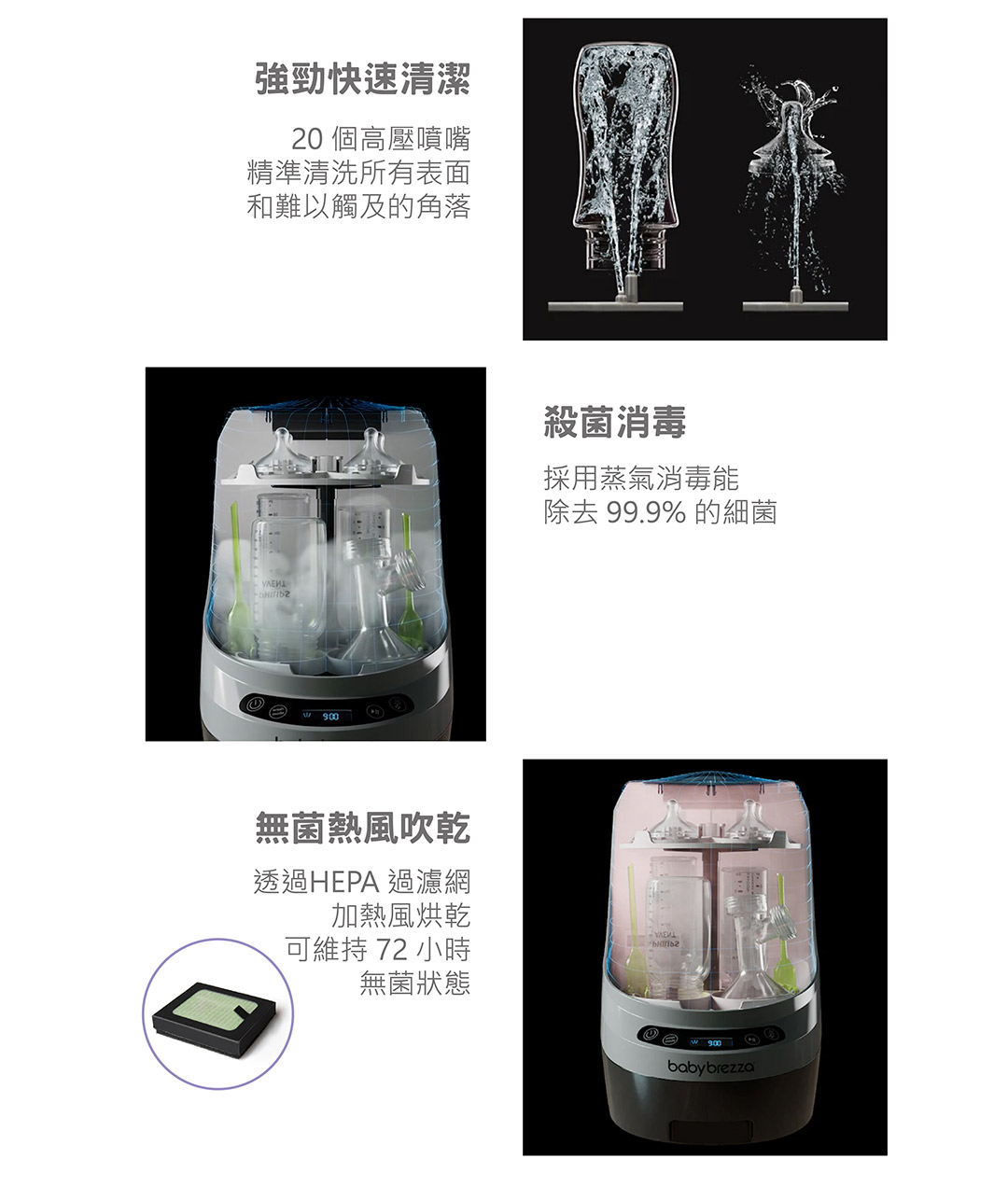✔20個上下高壓噴嘴,深度清洗奶瓶奶嘴