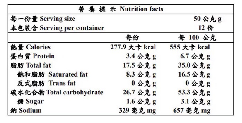 品名華元 波的多洋芋片蚵仔煎風味 600公克商品重量600公克成分馬鈴薯/棕櫚油/複合調味粉【砂糖、調味劑(L-麩酸鈉、琥珀酸二鈉、5’-次黃嘌呤核苷磷酸二鈉、5’-鳥嘌呤核苷磷酸二鈉、DL-胺基丙酸、胺基乙酸、醋酸鈉(無水)、醋酸)、麥芽糊精、醬油粉(釀造醬油、麥芽糊精、食鹽、砂糖、琥珀酸二鈉、5’-次黃嘌呤核苷磷酸二鈉、5’-鳥嘌呤核苷磷酸二鈉)、食鹽、蕃茄粉(蕃茄、二氧化矽)、黑醋粉(釀造烏醋、麥芽糊精、氧化澱粉(樹薯)、砂糖、DL-蘋果酸、焦糖色素、5’-次黃嘌呤核苷磷酸二鈉、5’-鳥嘌呤核苷磷酸二鈉、食鹽、薑、肉桂、檸檬酸(無水)、二氧化矽、丁香)、海苔粉、辣椒粉(辣椒、小麥粉)、沙茶粉(蔥、芝麻、椰子、薑、蒜頭、赤尾青蝦、辣椒、食鹽、咖哩粉、胡椒)、五香粉(小茴香、八角、肉桂、丁香、胡荽、香芹)、乳糖、葡萄糖、甜味劑(蔗糖素)】保存期限以消費者收受日起算,至少距有效日期前60日以上產地台灣食品業登錄字號B-156676194-00001-4產品責任險契約字號130012AKP0001383過敏原資訊本產品含有大豆、含穀蛋白之穀物、牛乳製品、芝麻種子、堅果類和甲殼類,與其它含有軟體動物類、魚類、芹菜和蛋的產品於同一工廠生產,食品過敏者請留意。製造/進口商名稱華元食品股份有限公司製造/進口商電話華元食品股份有限公司製造/進口商地址台中市梧棲區自立二街128號