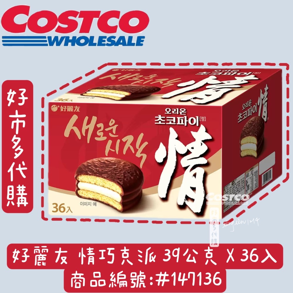 品名好麗友 情巧克派 39公克 X 36入商品重量1404公克商品尺寸長 25公分 X 寬 20公分 X 高 19.5公分成分糖、小麥粉、玉米糖漿、起酥油(棕櫚油、軟質棕櫚油、牛脂、椰子油、硬質棕櫚油、葵花油、迷迭香香料)、植物油(棕櫚油、軟質棕櫚油、牛油樹油)、可可粉、全脂奶粉、葡萄糖、明膠(豬)、複方膨脹劑(碳酸氫鈉、碳酸氫銨、磷酸二氫鈣)、全雞蛋液、鹽、可可塊、混合香料(香草香料、可可香料、梅乾香料、香莢蘭醛)、複合添加物(乾酪素鈉、氫氧化鈣、阿拉伯膠)、大豆卵磷脂、玉米糖膠、乳糖、棕櫚油。保存方式常溫保存保存期限(以消費者收受日起算,至少距有效日期前60日以上)產地韓國食品業登錄字號F-124481274-00000-5產品責任險契約字號132013AKP0000021過敏原資訊本產品含有含麩質之穀物、大豆、牛奶、蛋、堅果及其製品製造/進口商名稱韓麗國際有限公司製造/進口商電話02-89131189製造/進口商地址新北市新店區北新路三段205-1號9樓