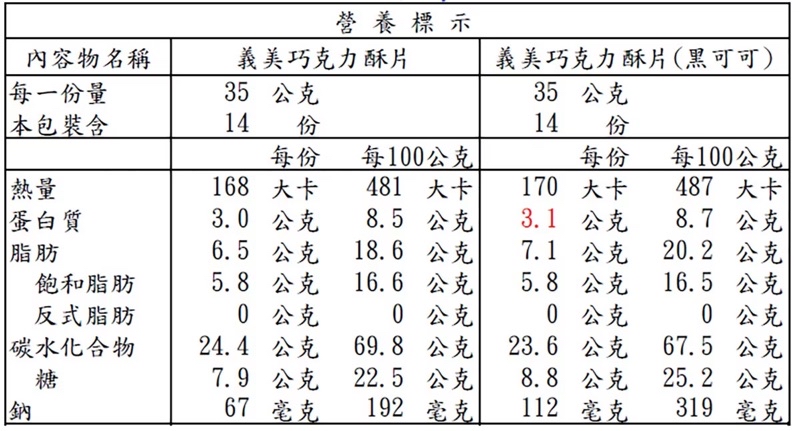 品名義美巧克力酥片 28入內容量/入數35公克 X 28入商品重量1.04公斤成分經典原味酥片 : 麵粉、蔗糖、植物油、(棕櫚油、棕櫚仁油、乳化劑(脂肪酸山梨醇酐酯))、可可粉、奶粉、乳清粉、乳糖、杏仁、大豆卵磷脂、膨脹劑(碳酸氫銨、碳酸氫鈉)、香料。