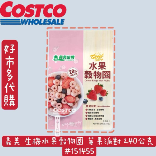 義美 生機水果穀物圈 莓果派對 240公克 #151455 好市多麥片 Costco麥片 穀物圈 早餐麥片好市多水果麥片