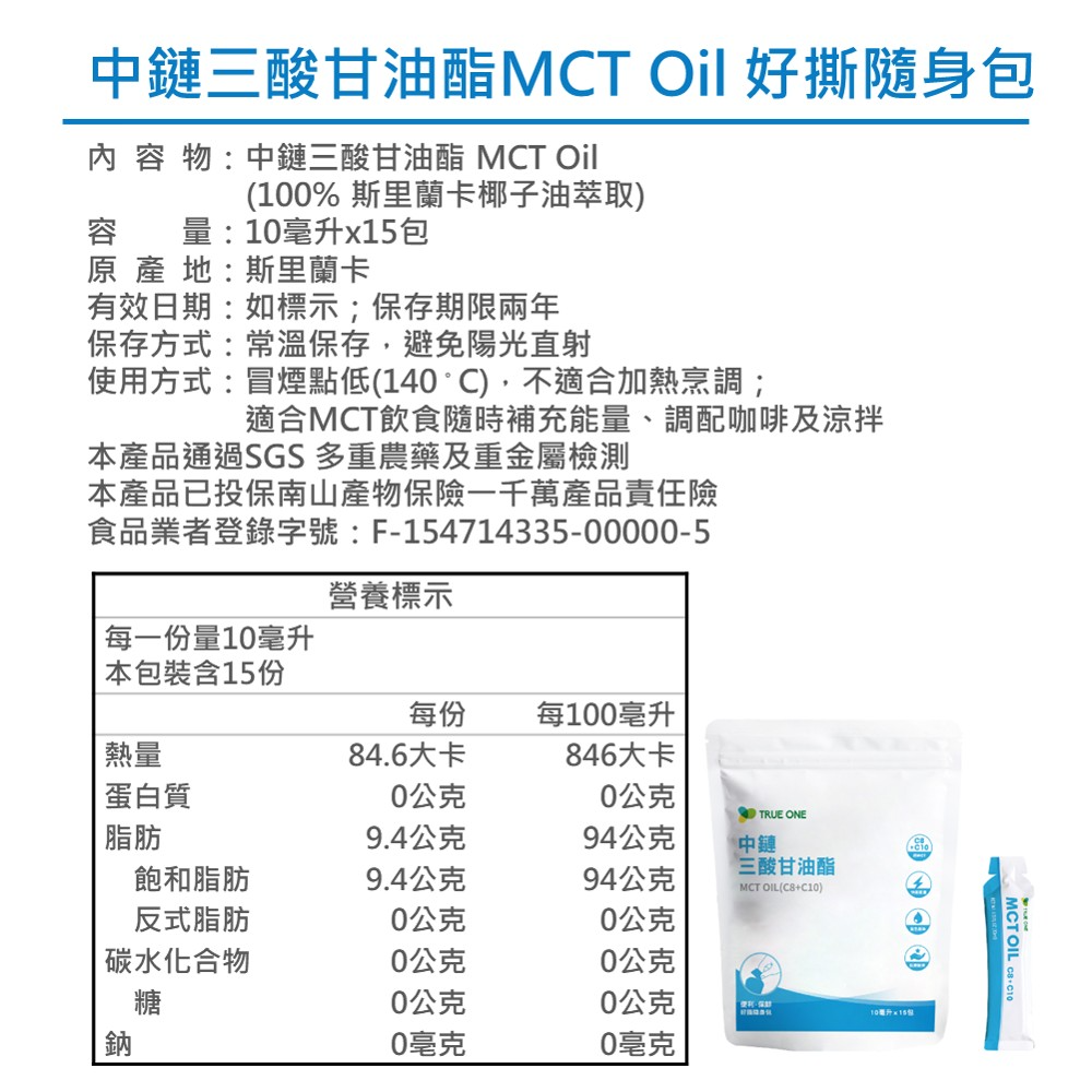⭐⭐⭐【中鏈三酸甘油酯 MCT OIL 好撕隨身包】每袋15包,每包10ml⭐⭐⭐