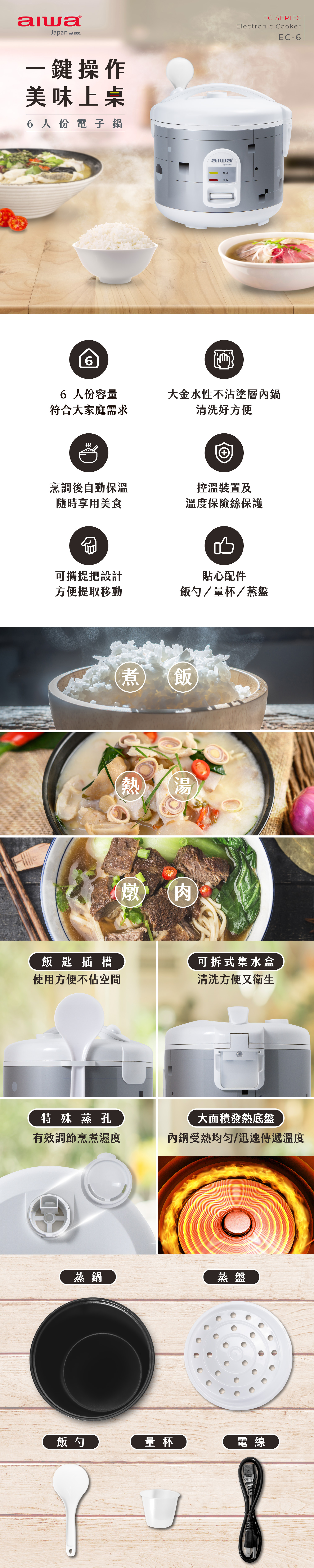 AIWA 愛華 6人份電子鍋 EC-6