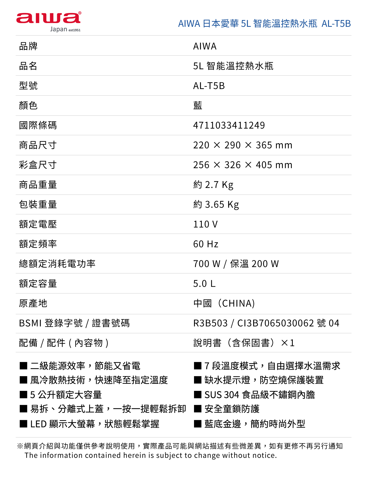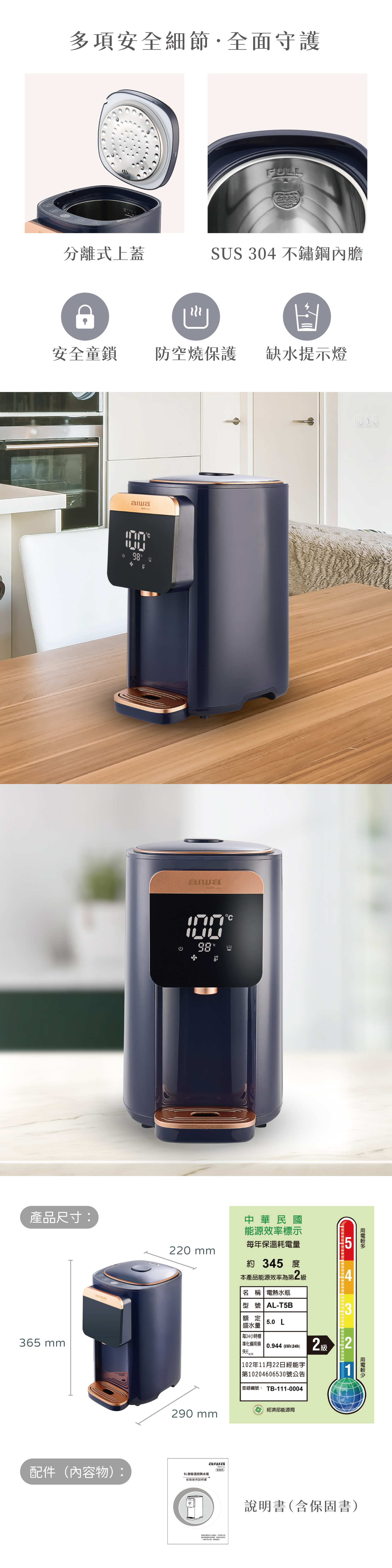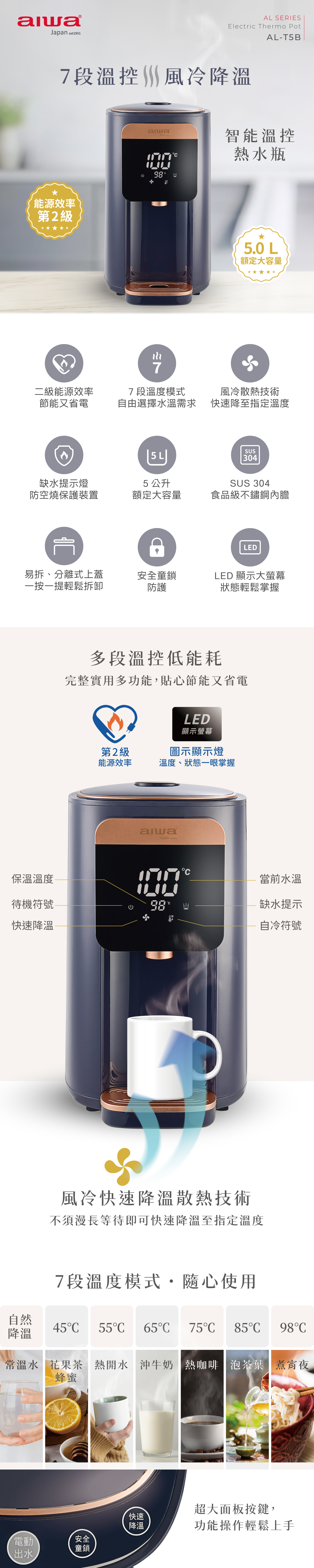 AIWA 愛華 5L 七段智能溫控電熱水瓶 AL-T5B