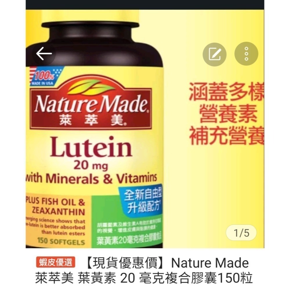 Nature Made 萊萃美 葉黃素 20 毫克複合膠囊150粒