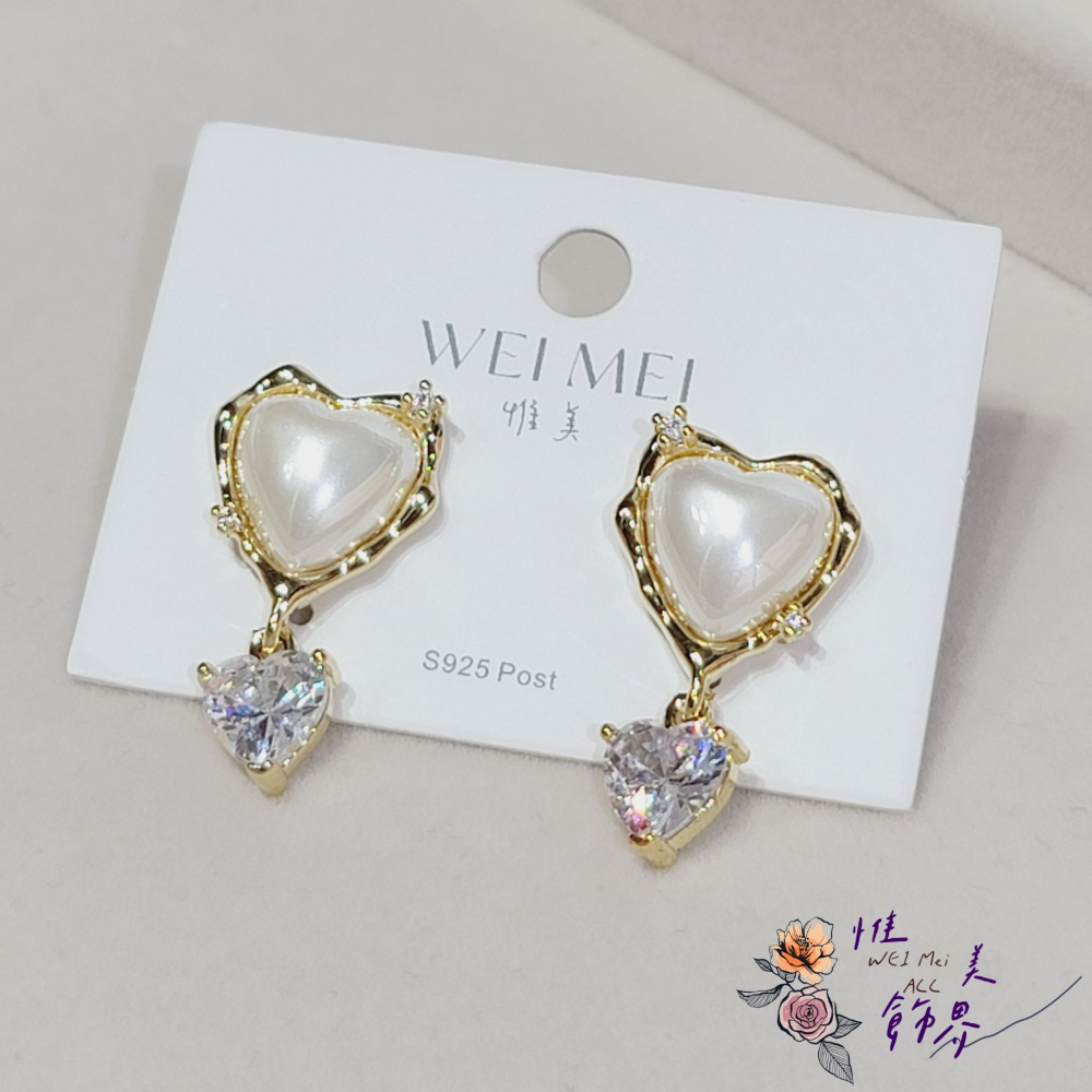 《惟美wei mei》B003法式白愛心垂墜耳環🦋台灣現貨/耳環推薦/耳環品牌/平價耳環
