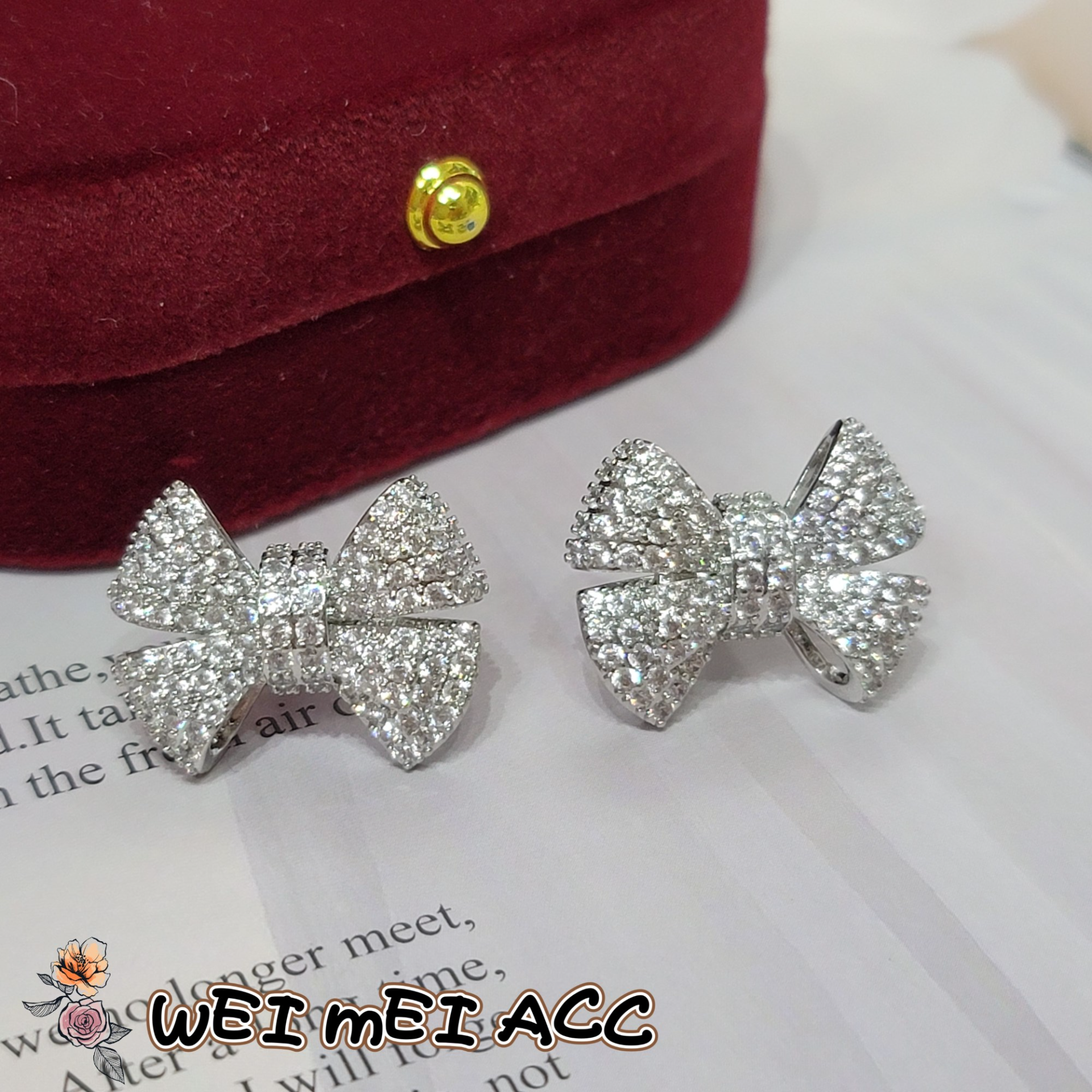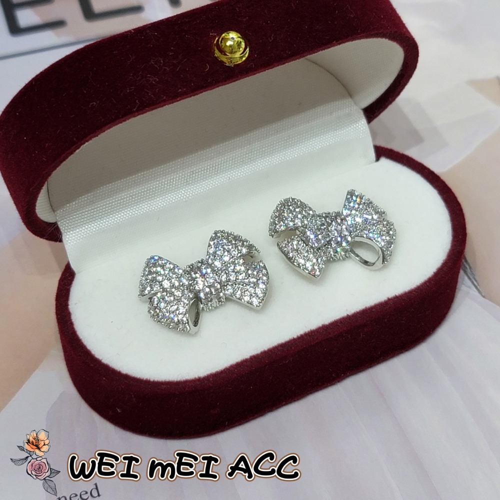 《惟美飾界 • WEI MEI》E001輕奢重工微鑲鋯石甜美蝴蝶結耳釘/台灣現貨不用等❤