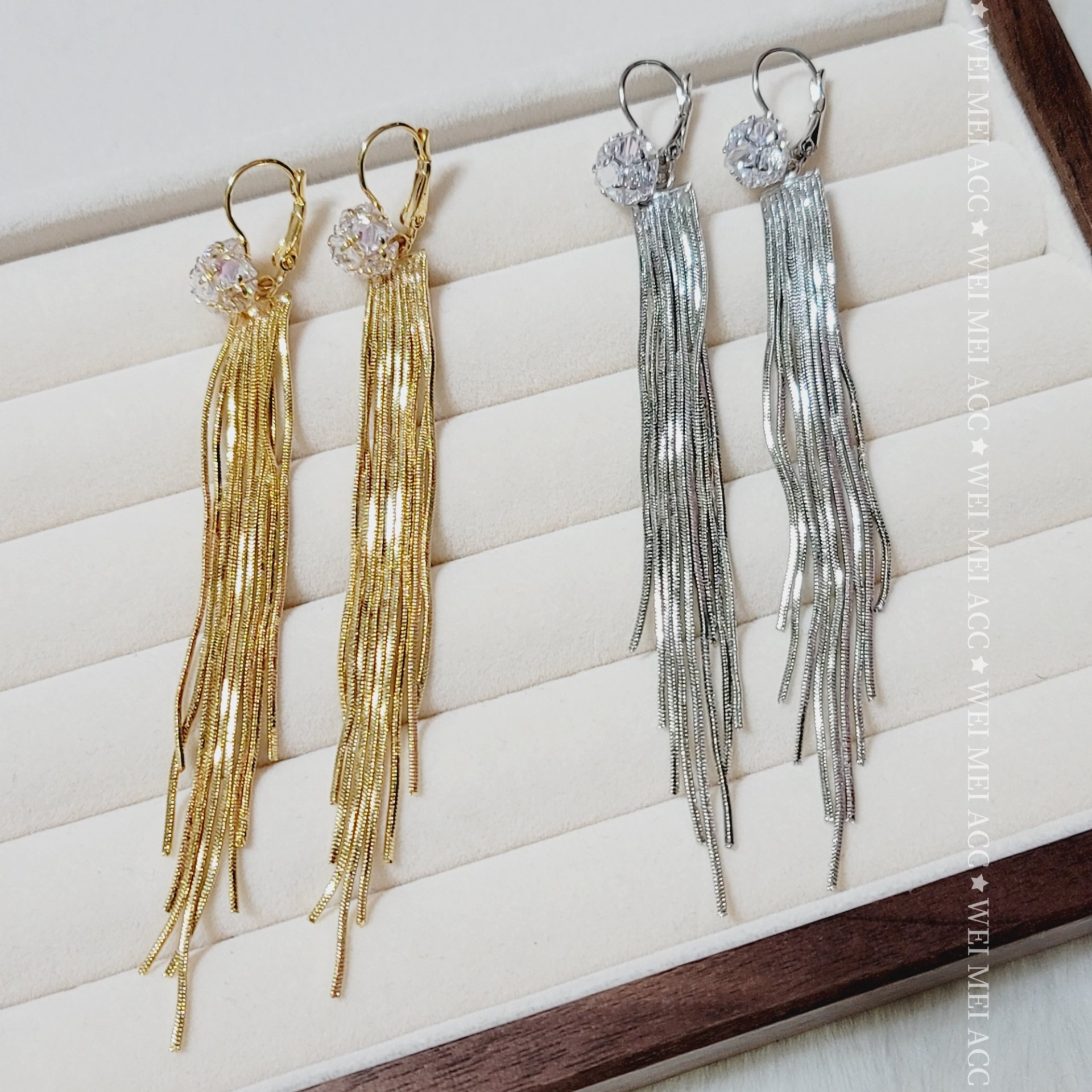 《惟美wei mei》O002閃耀鑽球簡約長流蘇耳扣耳環 修飾臉型 台灣現貨