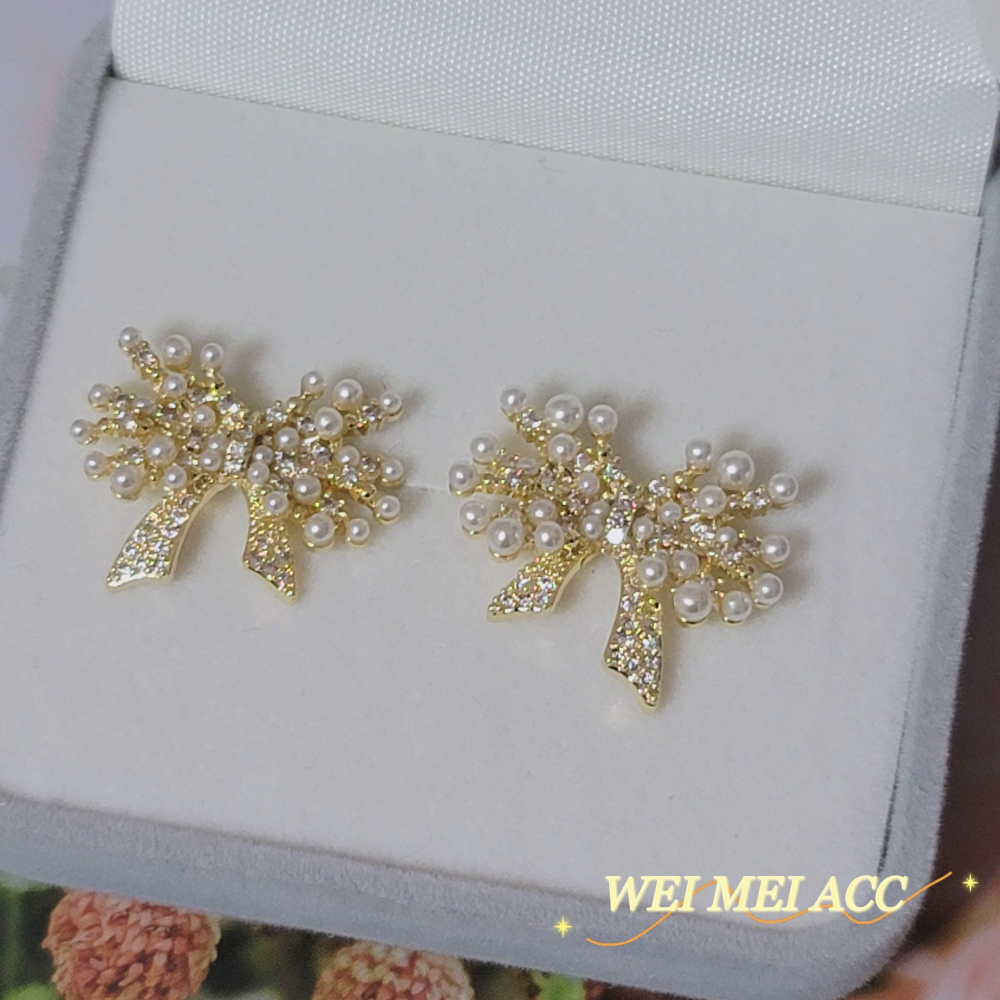 《惟美wei mei》A013法式典雅微鑲鋯石小米珠珍珠蝴蝶耳釘耳環 台灣現貨