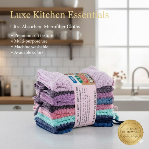 具備優異的耐磨性與耐高溫特質,作為廚房抹布使用也完全勝任。不掉毛、不褪色,清潔後掛在貼心的**「小掛勾」**上,快速晾乾,遠離細菌異味。