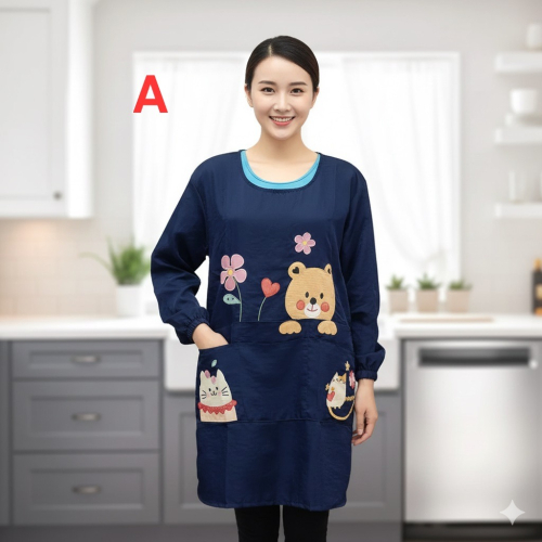 長袖全面防護:袖口鬆緊,阻擋濺濕與油汙