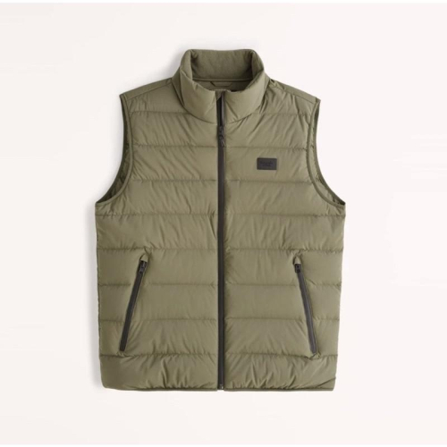全新正品 A&F 保暖羽絨夾克背心 AF輕盈高彈性羽絨背心 外套 男版軍綠色