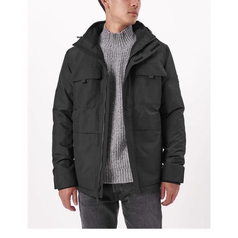 面料: 聚酯纖維(再生)  時尚科技款夾克,採用防風抗水面料,搭配再利用  填充物,舒適抓絨內襯,翻蓋胸袋和拉鍊側袋,防風袖口,風帽配有可調節鬆緊帶,拉鍊前襟,衣袖經典A&F Logo貼繡標誌。