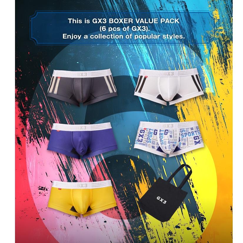 日本GX3 超值福袋 光澤霓虹多彩撞色四角褲 亮澤螢光運動平角內褲 附托特包 超值6入 K2255