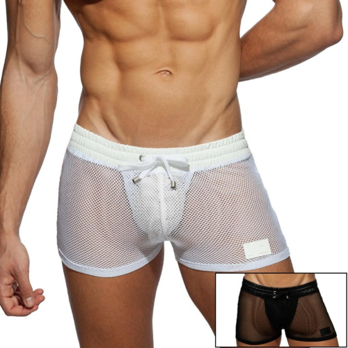ADDICTED 透明純色網眼運動短褲 AD 透網囊袋健身短褲 透視感 網狀裸感 AD846