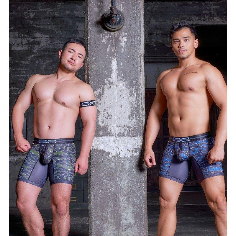 日本GX3 光澤觸感DX迷彩長腿平口褲 附臂環 金屬亮澤長版四角內褲 運動內搭競技摔角褲 2入 K1762