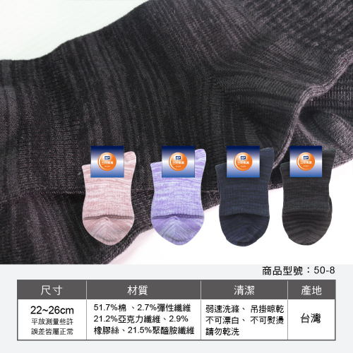 材質:棉、亞克力纖維、聚醯胺纖維、彈性纖維