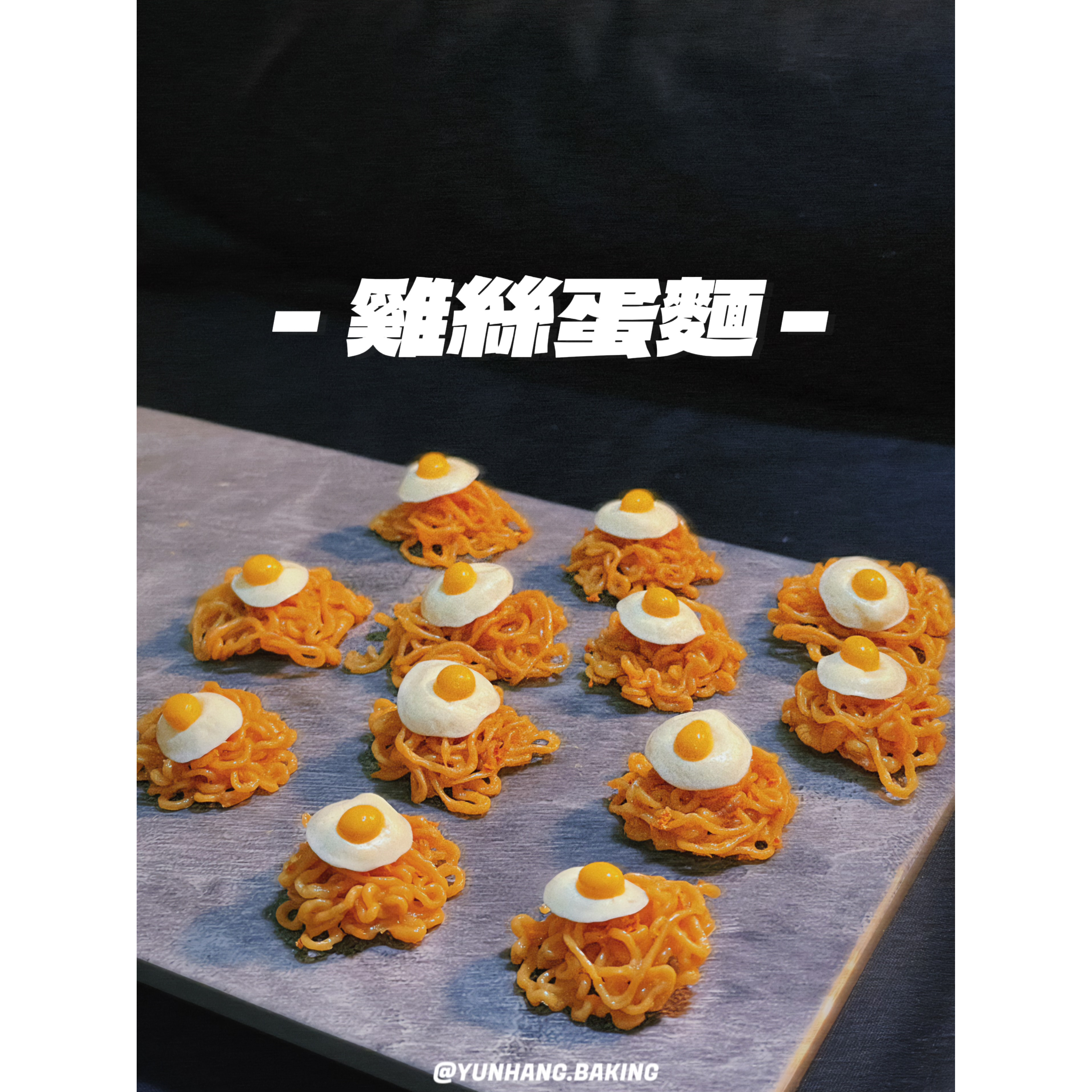 雞胸肉製成的泡麵造型,搭配奶香荷包蛋