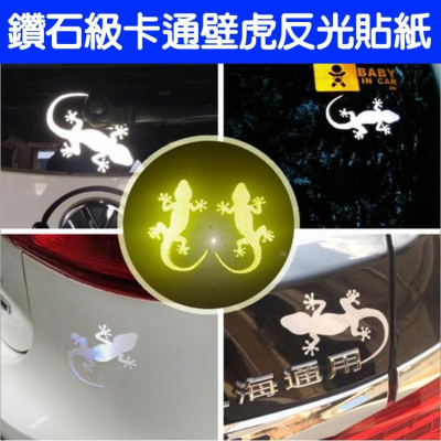 鑽石級卡通壁虎反光貼紙 避禍平安 遮擋刮痕 裝飾貼 警示貼-久岩汽車