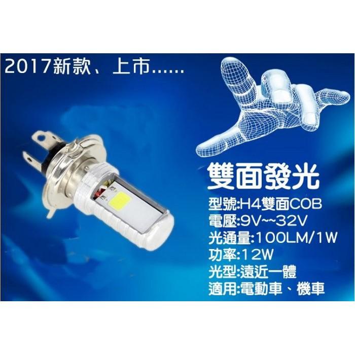 名稱:H4雙面COB 電壓:DC 9V-32V 色溫:6000K正白色(太陽光色溫) 變光:遠近+強弱光 產品壽命:大約50000個小時 適用於:電動車摩托車通用大燈泡