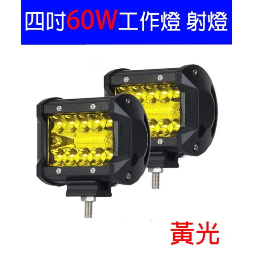 台灣現貨-4吋黃光方形四排60W聚光燈20LED射燈 工程車 超亮燈 輔助燈 霧燈 LED燈-久岩汽車