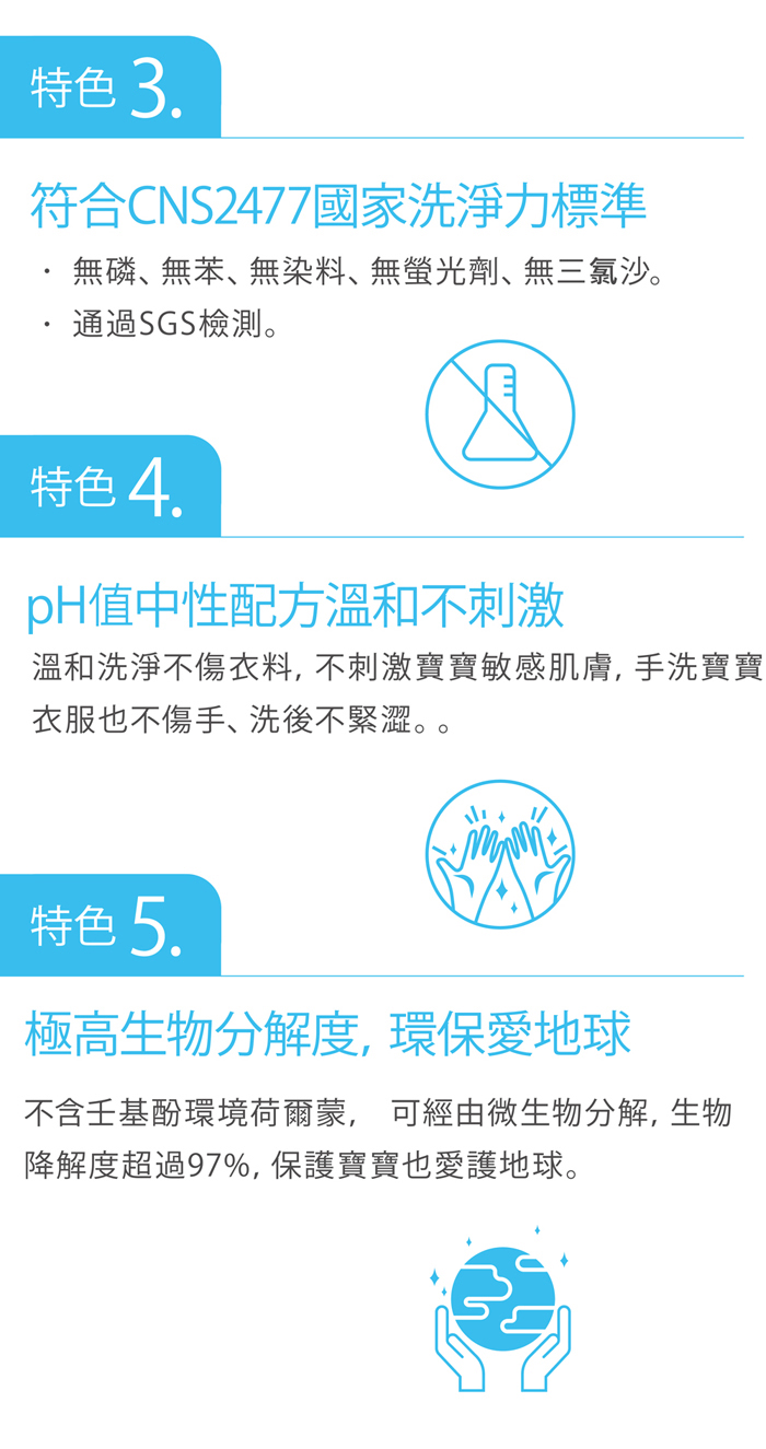綠色環保APG洗淨成份,溫和不刺激,成人貼身衣物也適用。