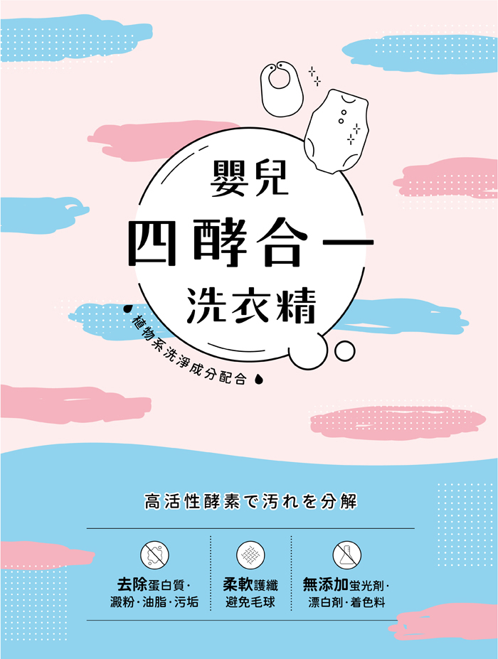 蛋白質酵素,除寶寶衣物上常見之奶垢或奶漬。