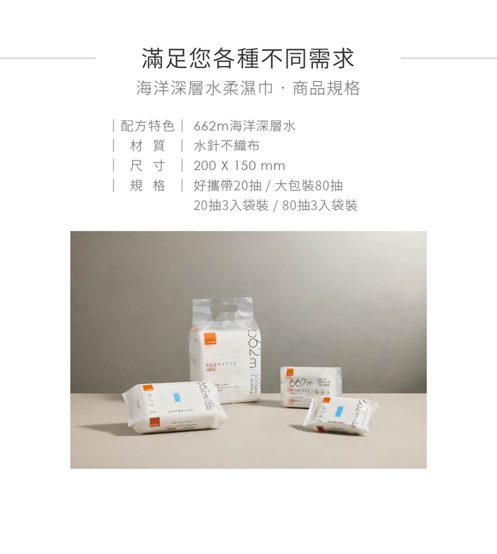 Combi 3入組| 海洋深層水柔濕巾|80抽|20抽|濕紙巾