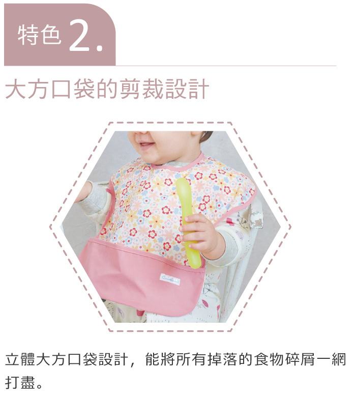 3.立體口袋設計,可以接住用餐掉落的食物碎屑。