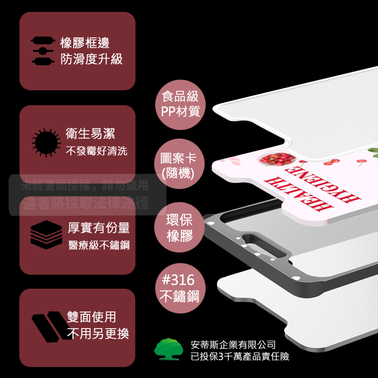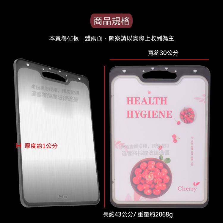 1.本產品經切、剁、刷洗等因物體間摩擦進而產生使用過的痕跡(刮痕)為正常現象,請安心使用。