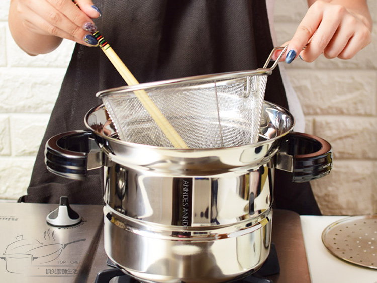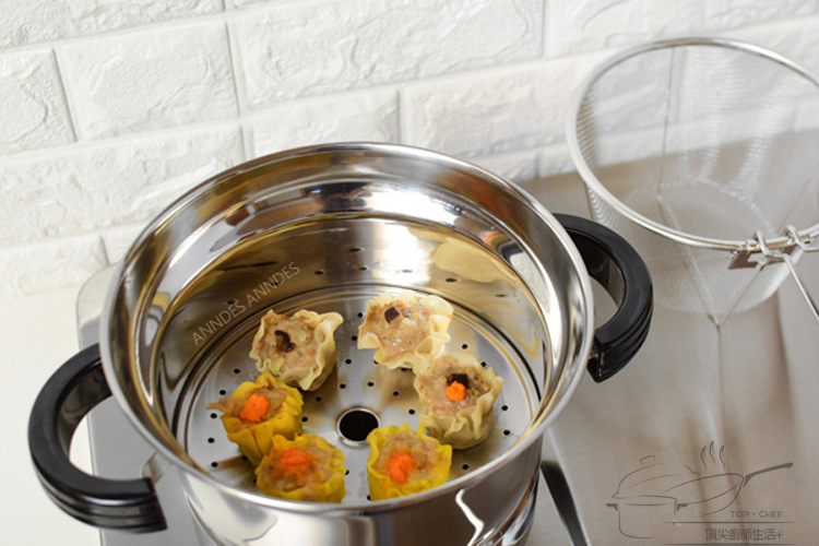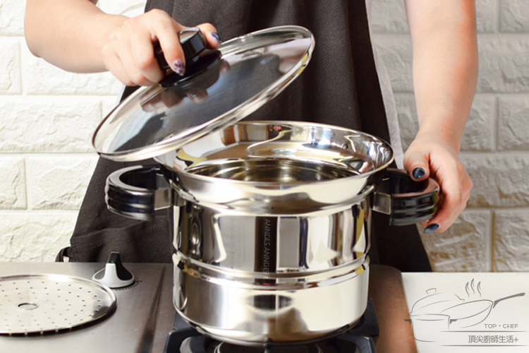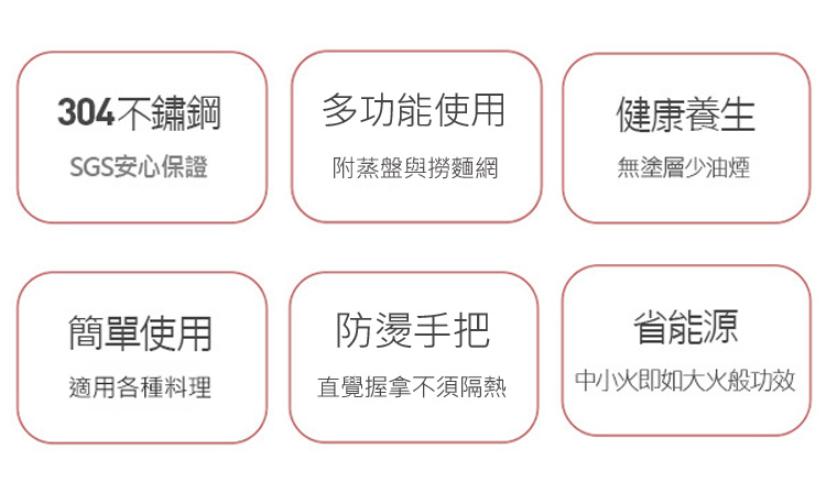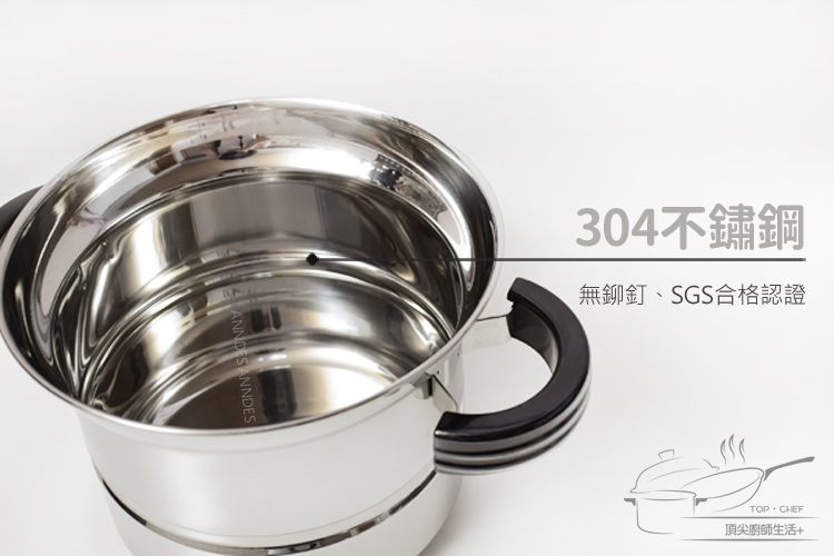 鍋內無鉚釘,內附蒸盤與撈麵網